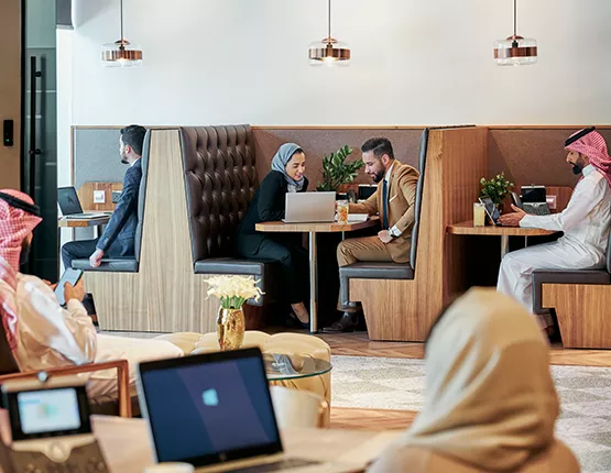 الوصول إلى قاعات اجتماعات مجهزة بالكامل ومساحات عمل مشتركة عند الطلب.