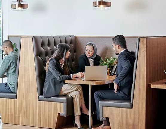 الوصول إلى قاعات اجتماعات مجهزة بالكامل ومساحات عمل مشتركة عند الطلب.