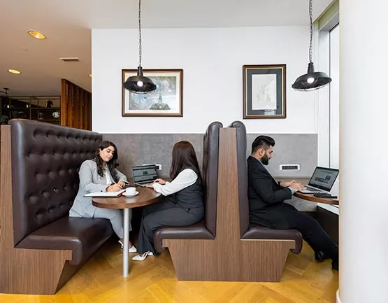 الوصول إلى قاعات اجتماعات مجهزة بالكامل ومساحات عمل مشتركة عند الطلب.