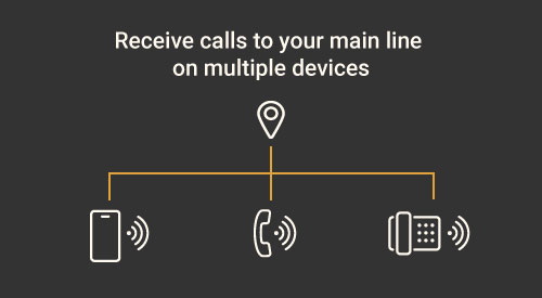 Calls to registered landline numbers, such as your main business line, are automatically transferred to another device (e.g. your home phone, mobile phone, etc.) in the specific order you decide.
